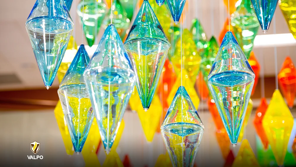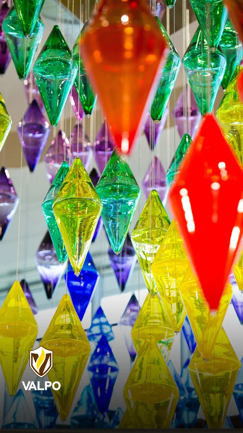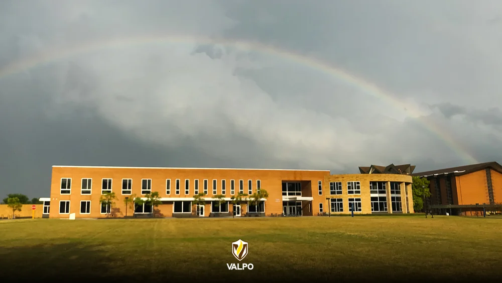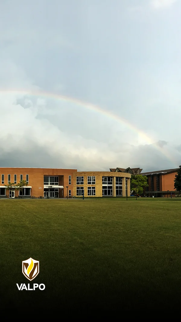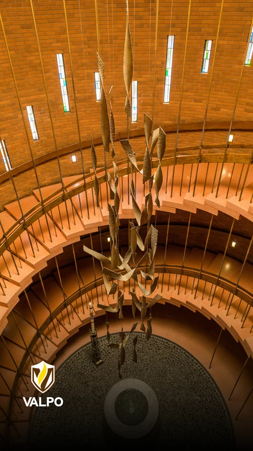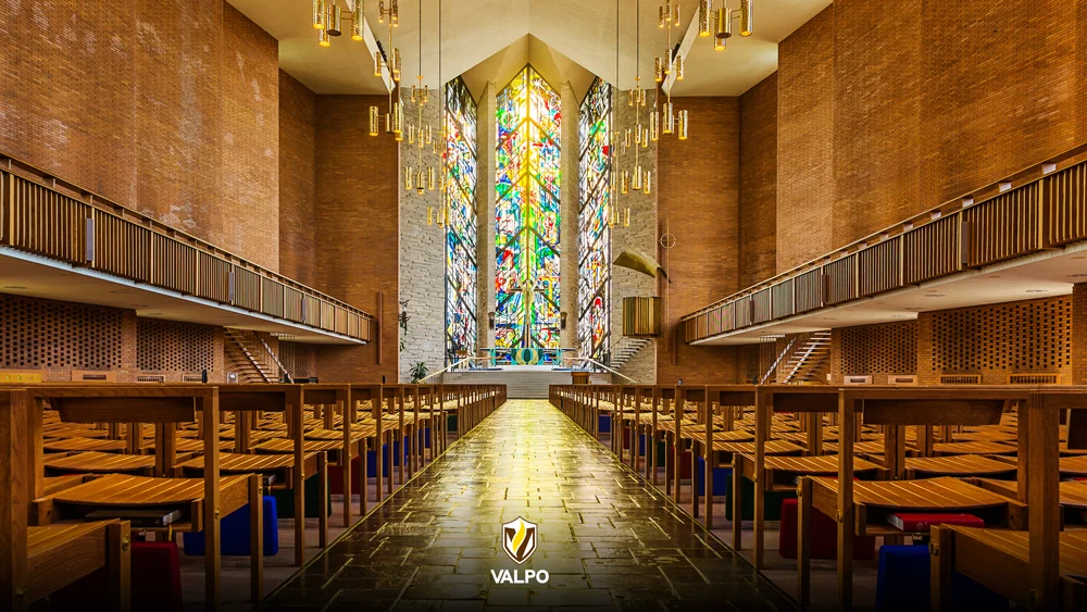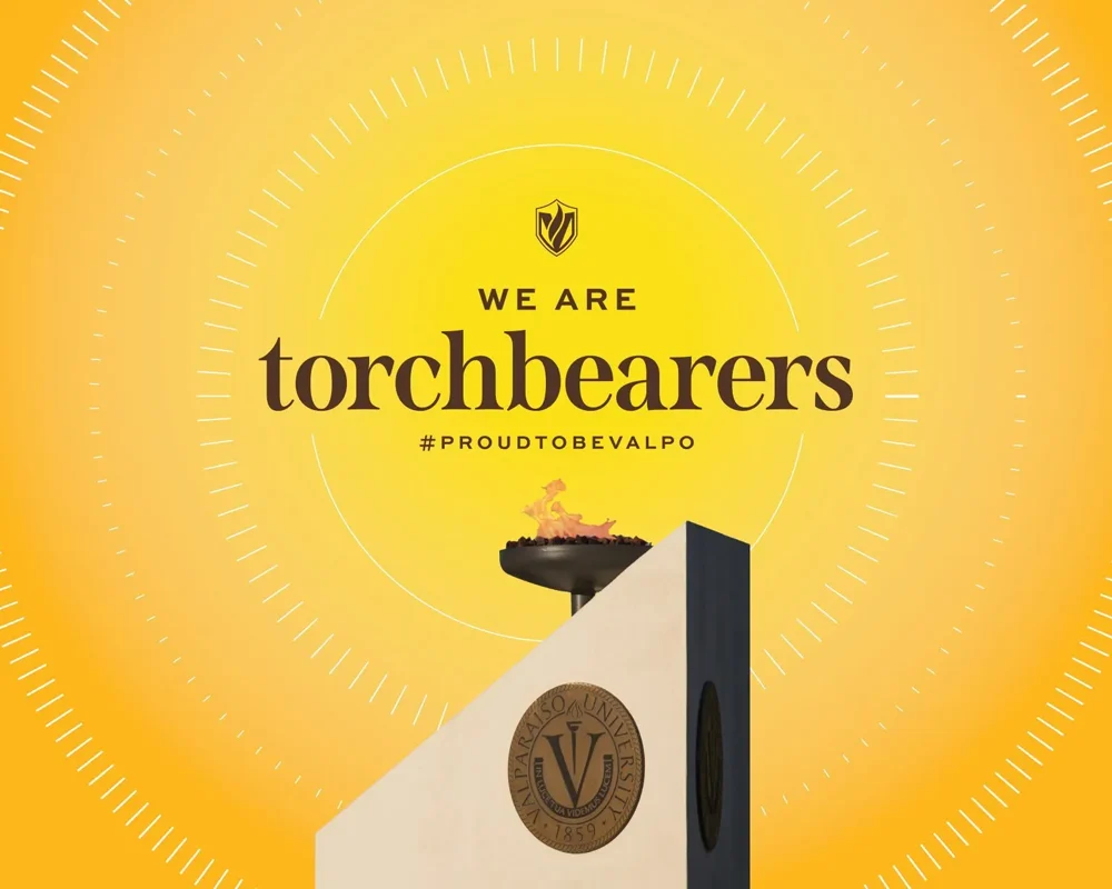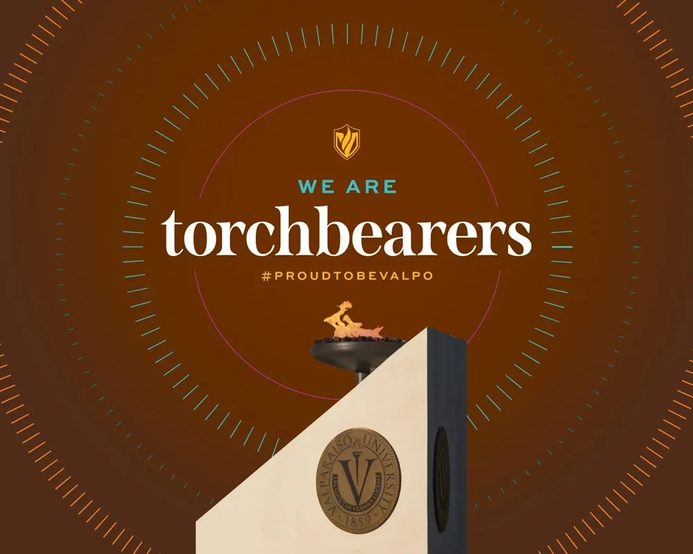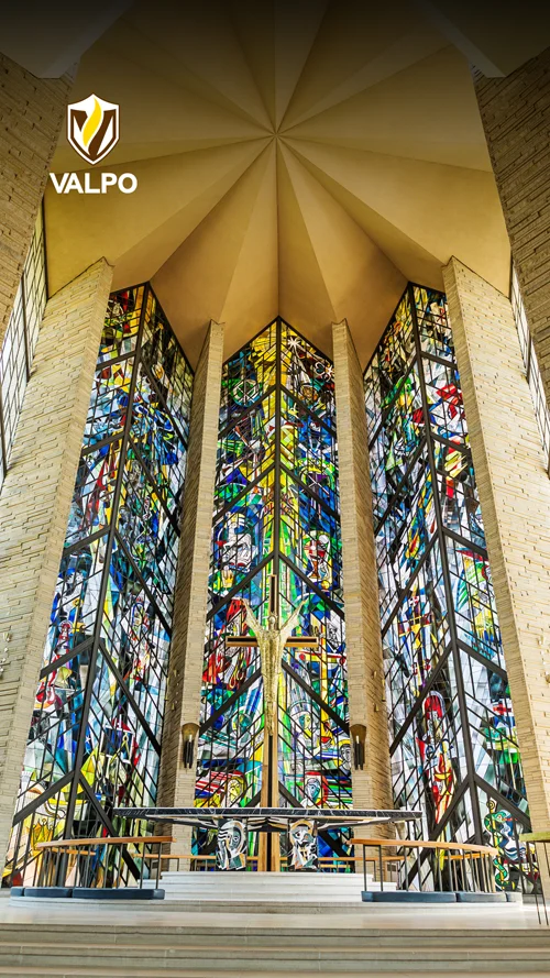 From the dynamic gradients that embody the true nuance of our radiance with iridescent colors signifying our interdisciplinary pursuits and collective call, to the circular stained-glass graphic succinctly representing our story in a single visual, to the radiating graphic that anchors our pieces and represents our outward impact on the world, each of our graphic elements serves a unique purpose and leaves a lasting impression, much like every member of our Valpo community.