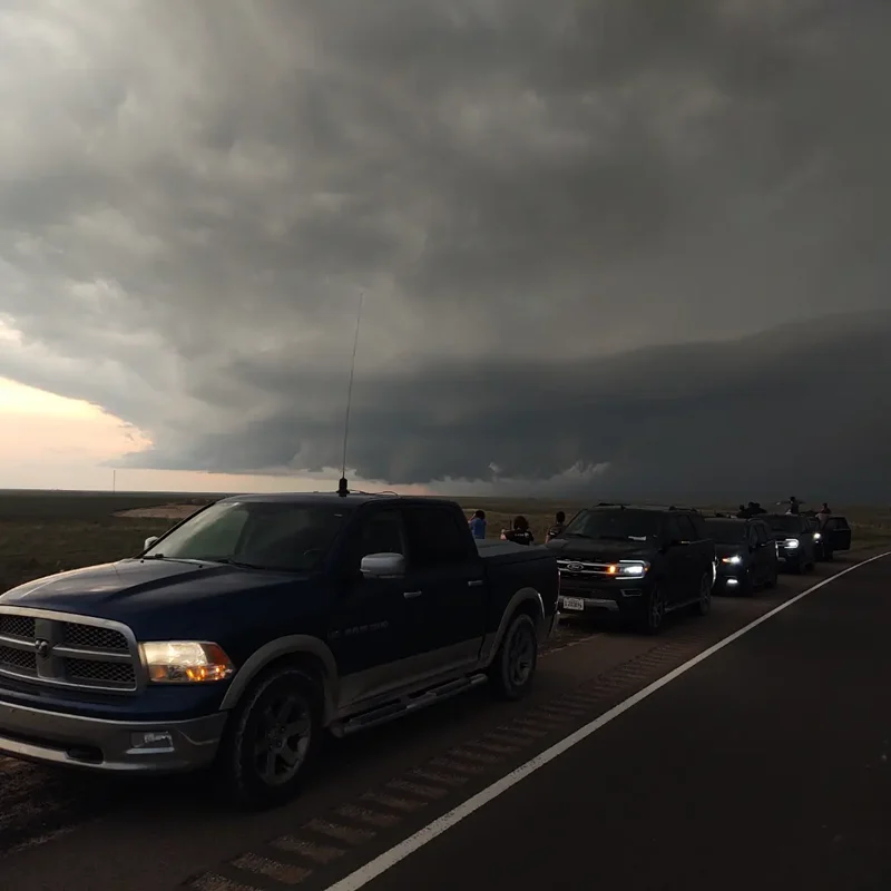 A Dodge Ram crew cab pickup, used during summer storm chases, is outfitted with a variety of instrumentation during field studies. iPads provided through a generous GoFundMe initiative also provide each vehicle in the convective summer field study with a mobile computer platform.